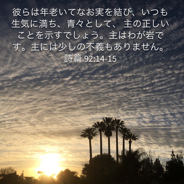 今日も驚くばかりの素晴らしいお天気に見舞われたサンディエゴです。朝からとても気分よく太陽の輝かしい日差しを浴びながら一日を始めました。 世界中至るところで寒気に見舞われ大雪で、事故等のため大変なニュースに接し、心を痛めております。「神様どうか一日も早く正常に戻りお助けのみ手を」と…