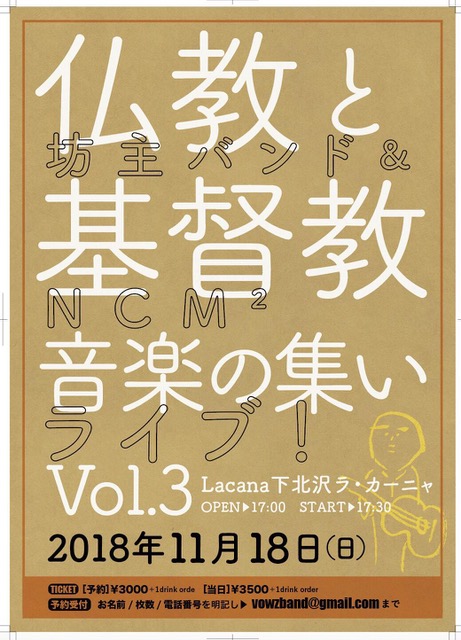 と、申しますのも来たる11月18日(日)下北沢の老舗ライブハウス、ラカーニャで坊主バンドさんとツーマンライブをするのですが、クリスチャンと称する方から「クリスチャンなのに・・」系の辛辣な”お小言”を頂戴しております。