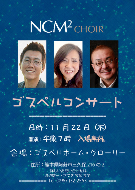 11月22日(木)午後7時 熊本県阿蘇市 ゴスペルホーム・グローリー