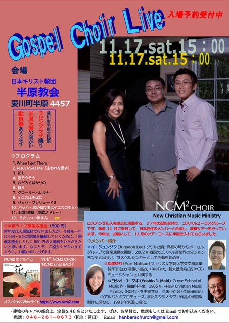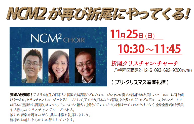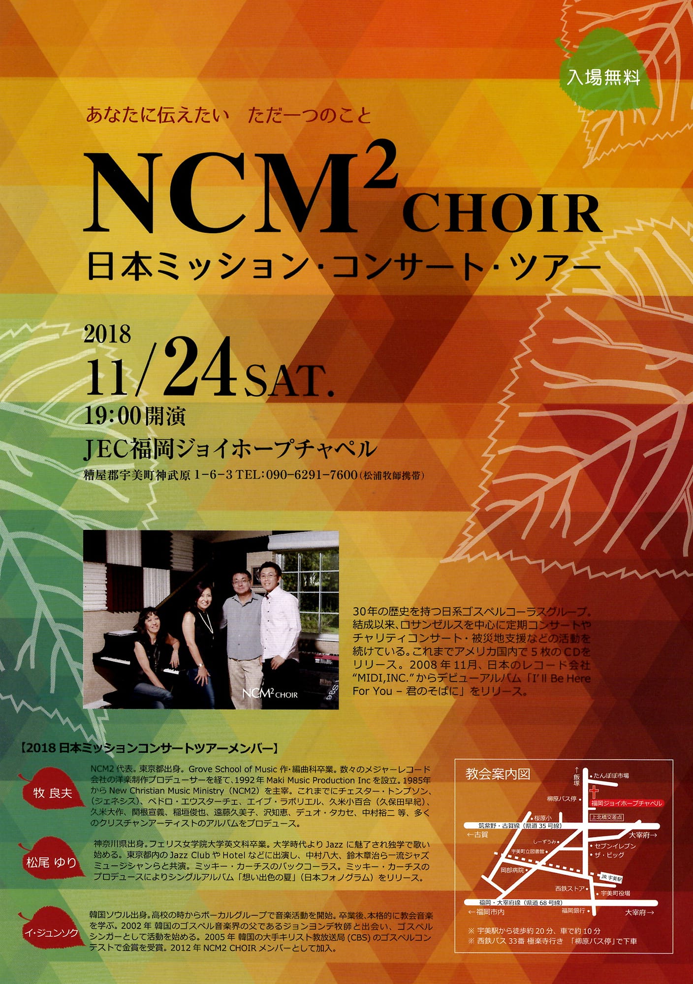 “NCM2 CHOIR 日本ミッションツアー 2018″。ツアーのスケジュールは下記のとおりです。約2年ぶりとなるNCM2の日本ミッションコンサートツアー。各会場近郊にお住まいの皆様、是非お出かけください。宜しくお願いいたします。