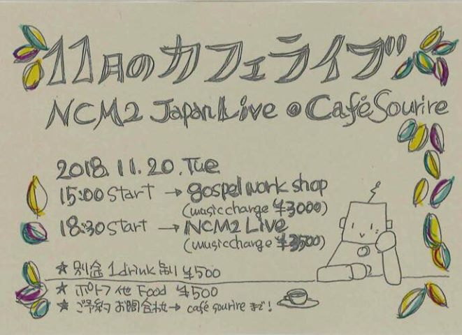 NCM2ライブ: start 18:30 3500円(+1drink order)